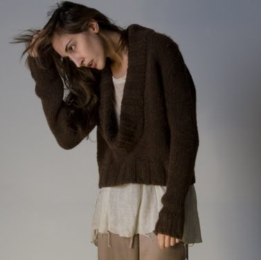 A.F Vandevorst cozy cowl-neck sweater ($130) styled w a Rick Owens men's tee with La Perla pj bottoms and 90's Helmut Lang kittens heels