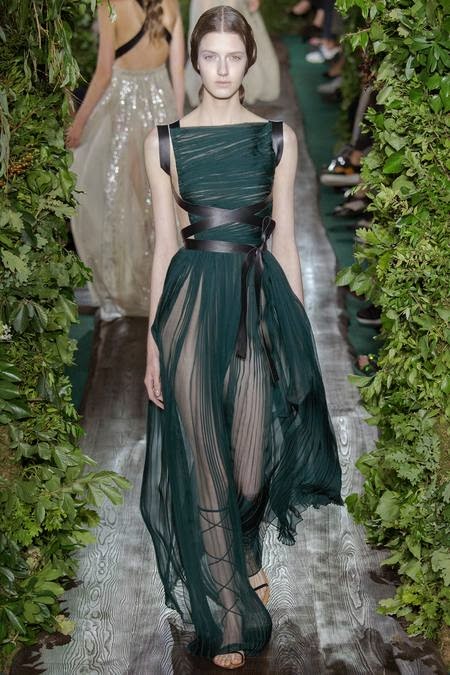 It's the age of innocence at Valentino. Their Fall 2014 Couture collection takes us for a languorous stroll through the garden of good (an air of youthful purity prevails) and evil (seduction comes by way of sheer, body-caressing tulle and bold black leather belts). The result: an ethereal blend of Romantic-era charm, Roman goddess-worship, and refined, restrained classicism.